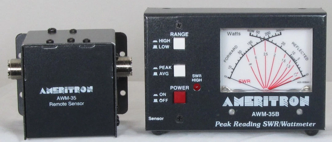 Just 1 5/8” thick – easily mounts on your dashboard for easy viewing. Flat mount on wall or shelf in your ham shack for best viewing angle. Remote sensor with 25 feet thin, flexible cable lets you place sensor and coax out-of-the-way. Handles full 1500 Watts, 1.8-60 MHz. LED lighted Cross-Needle meter. Active electronics lets you read true peak or average power in two power ranges. Has “High SWR” LED. Flat-Mount watt-meter measures 5W x 3 1/4H x1 5/8D” remote sensor is tiny 3 1/2W x 2 3/4H x 2 3/4D”. Use 9V battery or 12 VDC.