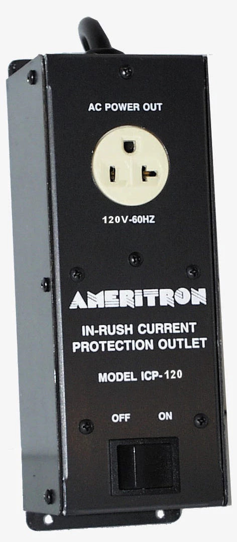 Momentary high-voltage “spikes” in the ac line can also cause damage to your amplifier. The Ameritron Inrush Current Protectors have built-in varistors to absorb these spikes before they can cause damage. Works with nearly all linear amplifiers. Ameritron ICP-120, for 120 volt wired amplifiers. Limits current to 12 amperes during heavy draw inrush period. 20 amperes continuous operating current.