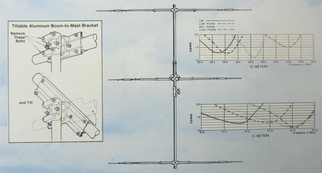 Dual Band beam for 10 and 15 meters. Incorporates Hy-Gains Superior mechanical design and has been computer optimized and range-tested for maximum performance. DB-1015 features a 14 foot boom in 4 sections packaged for DX-peditions. It handles full legal power and has Hy-Gains standard rugged boom-to-mast clamp.
