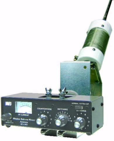 Complete antenna system mounts on window frames, balconies, and railings. Perfect for apartment dwellers. Covers 80-6 Meters. Includes universal mount/clamp, built-in antenna tuner with RF isolator, long 12 foot telescopic whip (22.5 inches collapsed), high efficiency loading coil for 40/80 Meters, counterpoise wires, and safety rope. Handles 200 Watts.