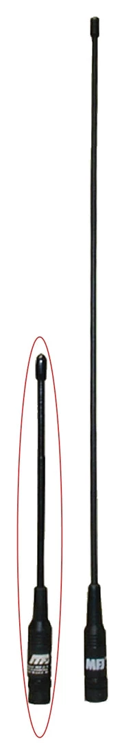 Dual band 144/440 MHz Flex Duck is similar to the MFJ-1717. 7 ½ length. ¼ wave – 440 and efficient loaded ¼ wave – Meters.