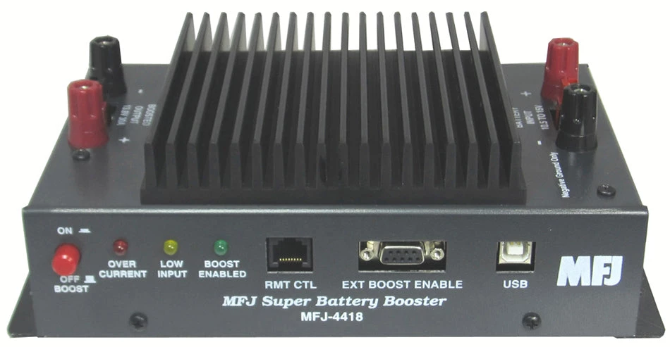 Like MFJ-4416C but has an on-board microprocessor to give more intelligent features and protection. Power switch allows load to be isolated from input, protecting from over current/voltage greater than 15V from boost supply or improper input.