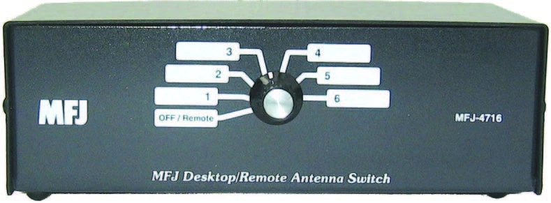 Use this MFJ-4716 Six-position Antenna Switch on your desk or place it out-of-way under your desk or in another room and use a remote control.