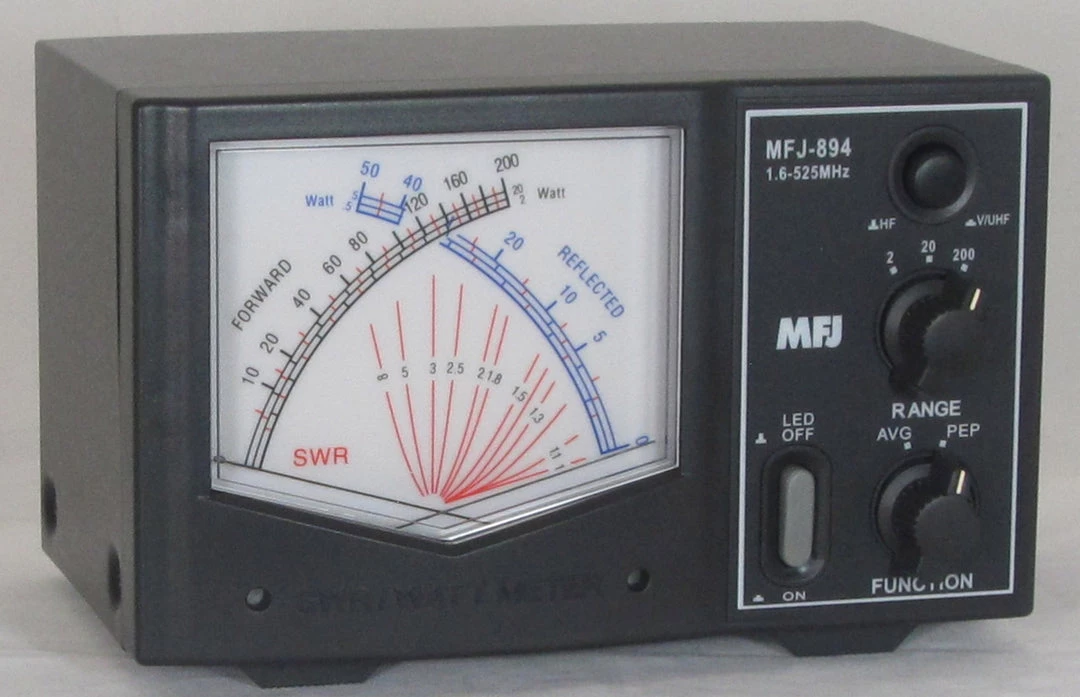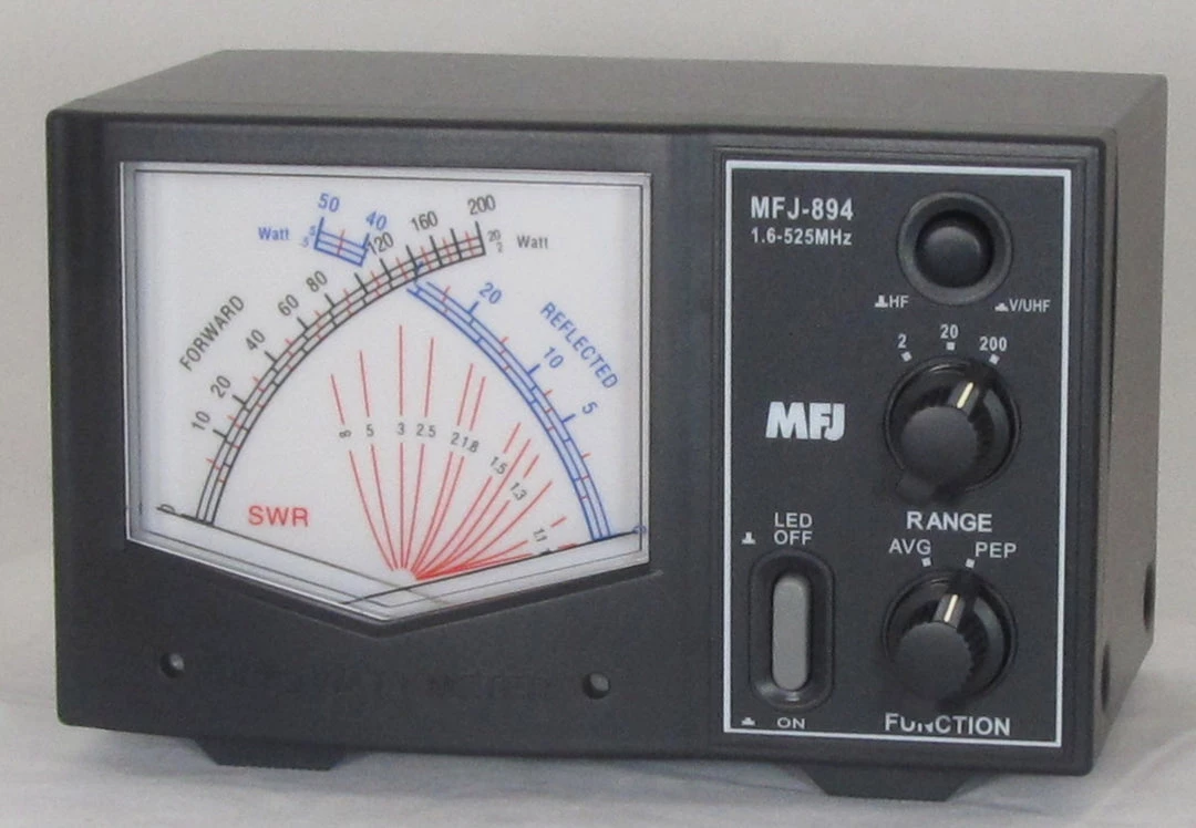 These new MFJ Giant SWR / Watt meter series have large 3 ⅝” Cross-Needle SWR / Watt-meters that have a three-color scale for improved readability. These wattmeters simultaneously display forward/reflected power and SWR all at a glance! They each have individual meter scales for each power range that increase reading accuracy. A True Active peak-reading circuit is included for SSB operation (MFJ-891 only). LED backlighting provides smooth and even illumination for easy night viewing. Low bias Schottky diode detectors increase linearity from low power to high power readings. A true directional coupler for increased accuracy gives solid readings over the entire frequency range, HF to UHF. DC grounded antenna connectors prevent electrostatic build up. SWR less than 1.2:1. Meter accuracy is +/- 10% of full scale or better. Has lighted meter on/off switch. These wattmeters are extra sturdy with large rubber feet and a rugged metal and a designer-styled plastic injection molded front panel. Handsome black speckled finish and gray molded front panel aesthetically complements today’s modern transceivers. Quality SO-239 connectors. 7 ¼”W x 4 ½”H x 4 ½”D.