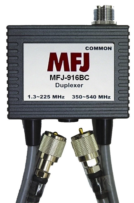 Heavy duty diecast enclosure houses low pass networks that separate/combine 144/440 MHz signals. Ports are 50 Ohms, units handle 200 Watts PEP. MFJ-916B has low loss SO-239 connectors. MFJ-916BN has type N connectors. MFJ-916BC has 12” coaxial pigtails with PL- 259 connectors. MFJ-4916S has SO-239 connectors, but handles 600 Watts PEP.